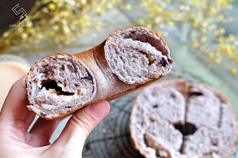 麵團裡揉進打碎的野生藍莓果乾,拆開包裝時就能聞到那股帶著森林氣息的天然果香,酸甜中蘊含成熟莓果感,夾心則是柔軟細滑的 cream cheese,沒有誇張的爆餡視覺,反而恰如其分地填補了口感的空隙,彷彿吃下一口藍莓雲朵,風味內斂溫和,意外地令人著迷。