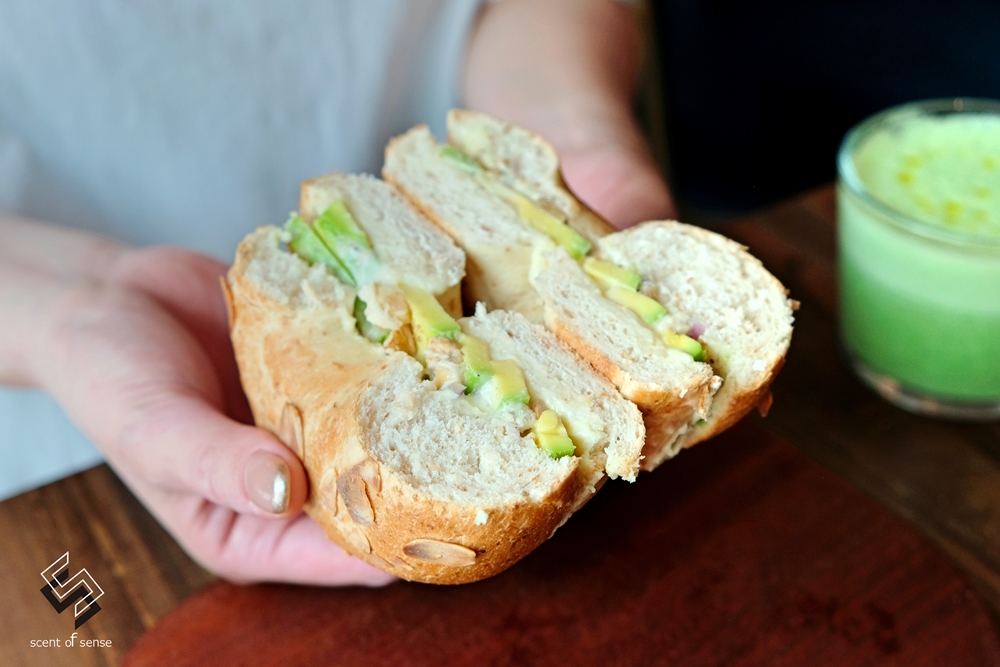 酪梨的天然油脂感與奶油乳酪簡直是天作之合,兩者在口中一起化開,滋味豐潤卻不膩口,即使不加任何肉肉,也不覺得空虛,亦是蔬食好選擇,健康與美味一次到位。