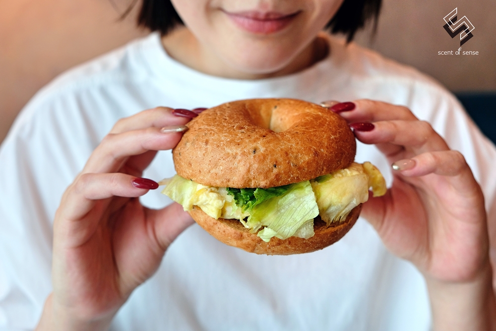 原味時代的貝果內層帶有彈牙嚼感,不過於結實,也不像一般麵包那樣鬆軟,吃不到豆渣感,只有溫潤的豆味與麥香在嘴裡緩緩散開,讓人忍不住一口接一口,就算不加任何配料,單吃原味麥香減醣貝果都不會覺得無聊。